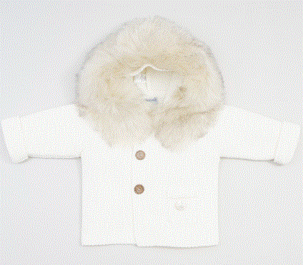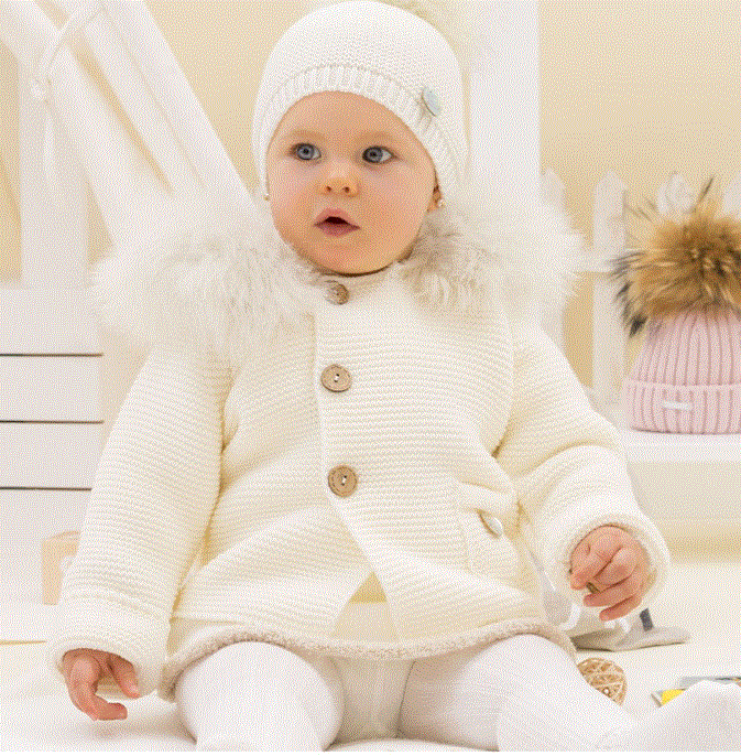 Precioso Abrigo pelo sintético Pangasa con tejido de punto en color Marfil.