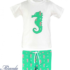 formado por bañador bóxer, en tono verde agua con estampado de caballitos de mar y estrellitas.