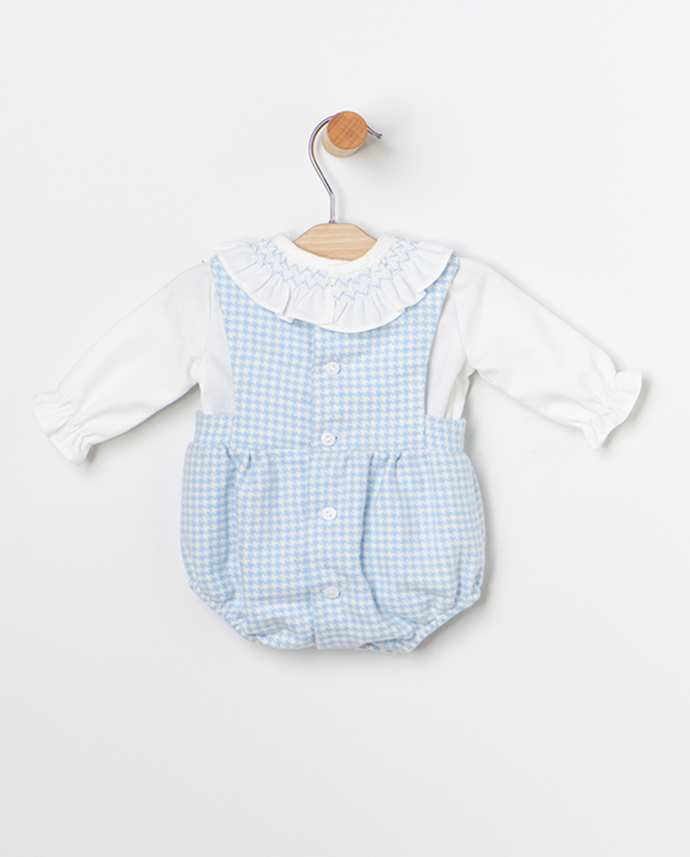 Peto estampado a cuadros Vichy, con cierre de corchetes, en la zona bajera del cubre pañal.