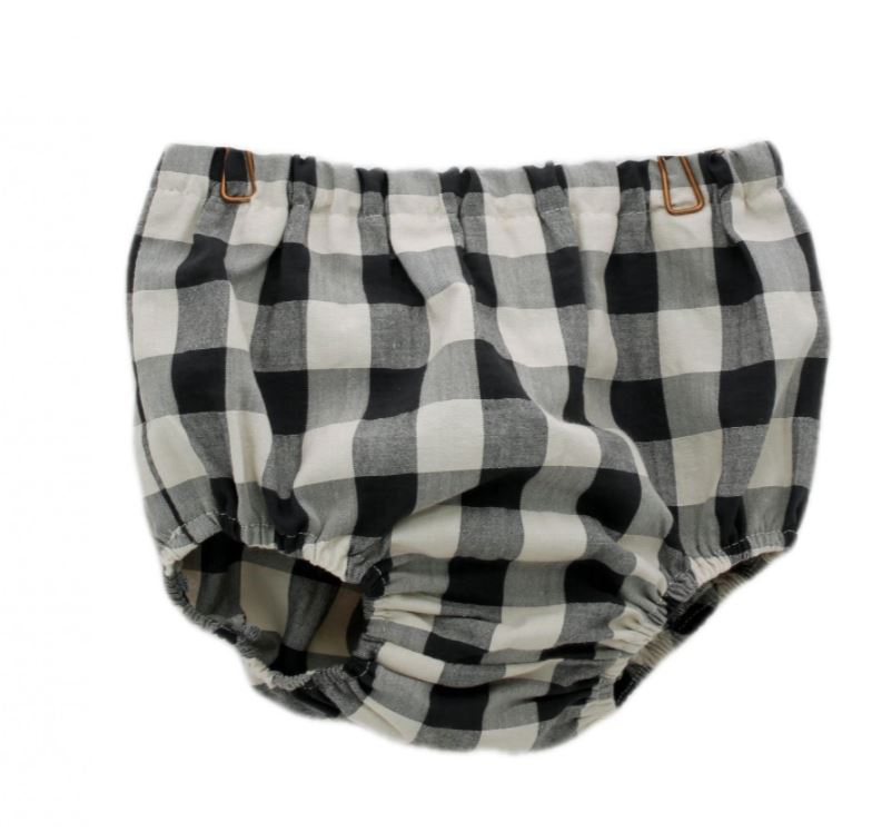 Incluye cubrepañal a cuadros grises, negros y blancos.