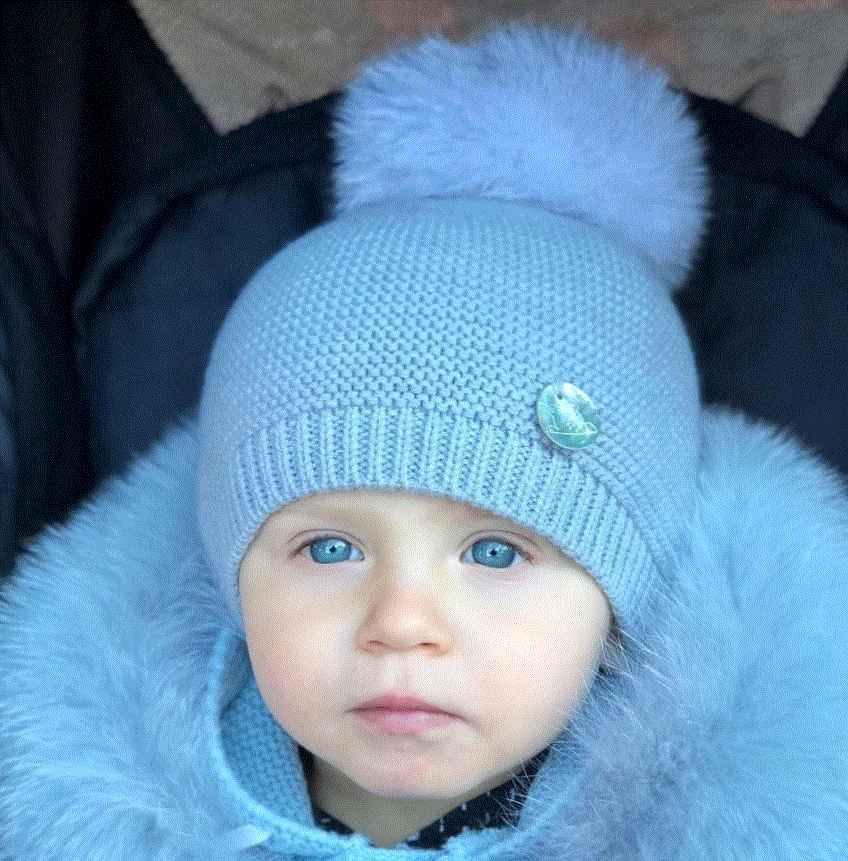 Gorro modelo links de Pangasa celeste empolvado con pompón quita y pon realmente espectacular para acompañar con nuestros abrigos