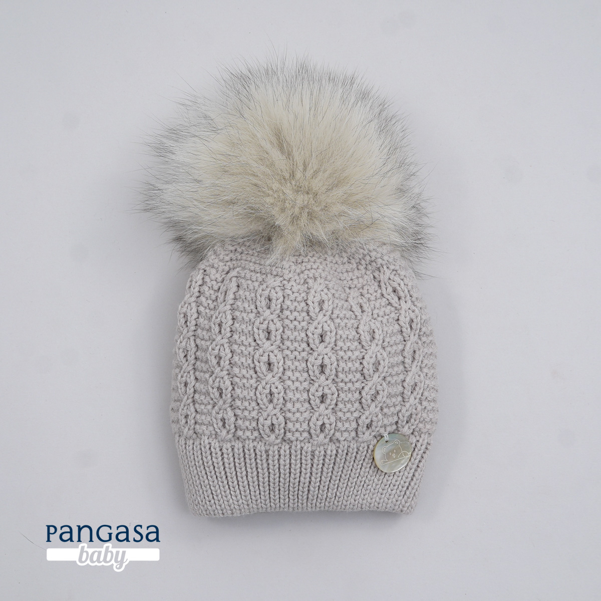 Gorro ochos pompón de Pangasa color camel pelo sintético quita y pon para un lavado fácil.