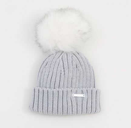 Gorro pompón de Pangasa color gris pelo sintético quita y pon para un lavado fácil.