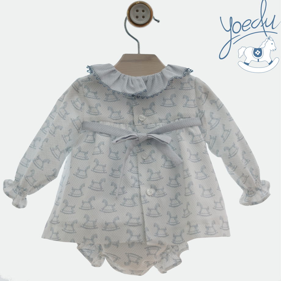 Preciosos estampado especial de la firma con dibujo de caballitos en tonos rosas.