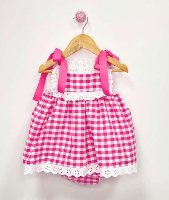 Jesusito para bebé niña de la colección Familia Granja cuadros vichy rosas Mon Petit Bonbon.
