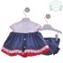 Falda con estampado de estrellitas y doble volante. Detalle de lazo en el centro con apliques rojos en mangas.