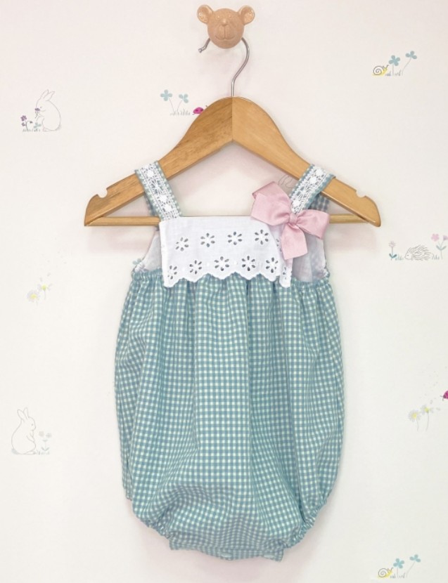Pelele bebé niña cuadros vichy verde colección Pio pio.