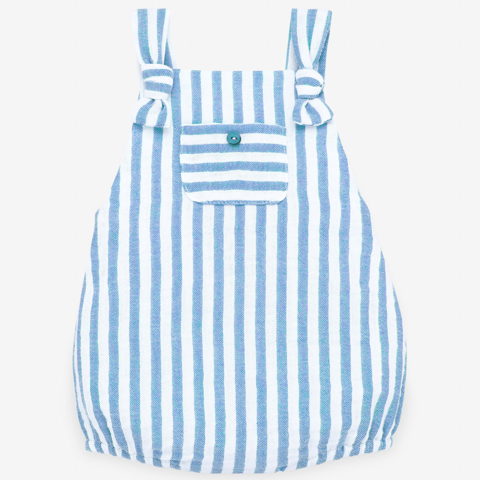 Ranita bebé de la firma de Paz Rodríguez en forma de peto con tejido a rayas azules y blancas.