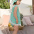 Estampado verde agua con caballitos de mar y tul bordado con detalle de lazito.