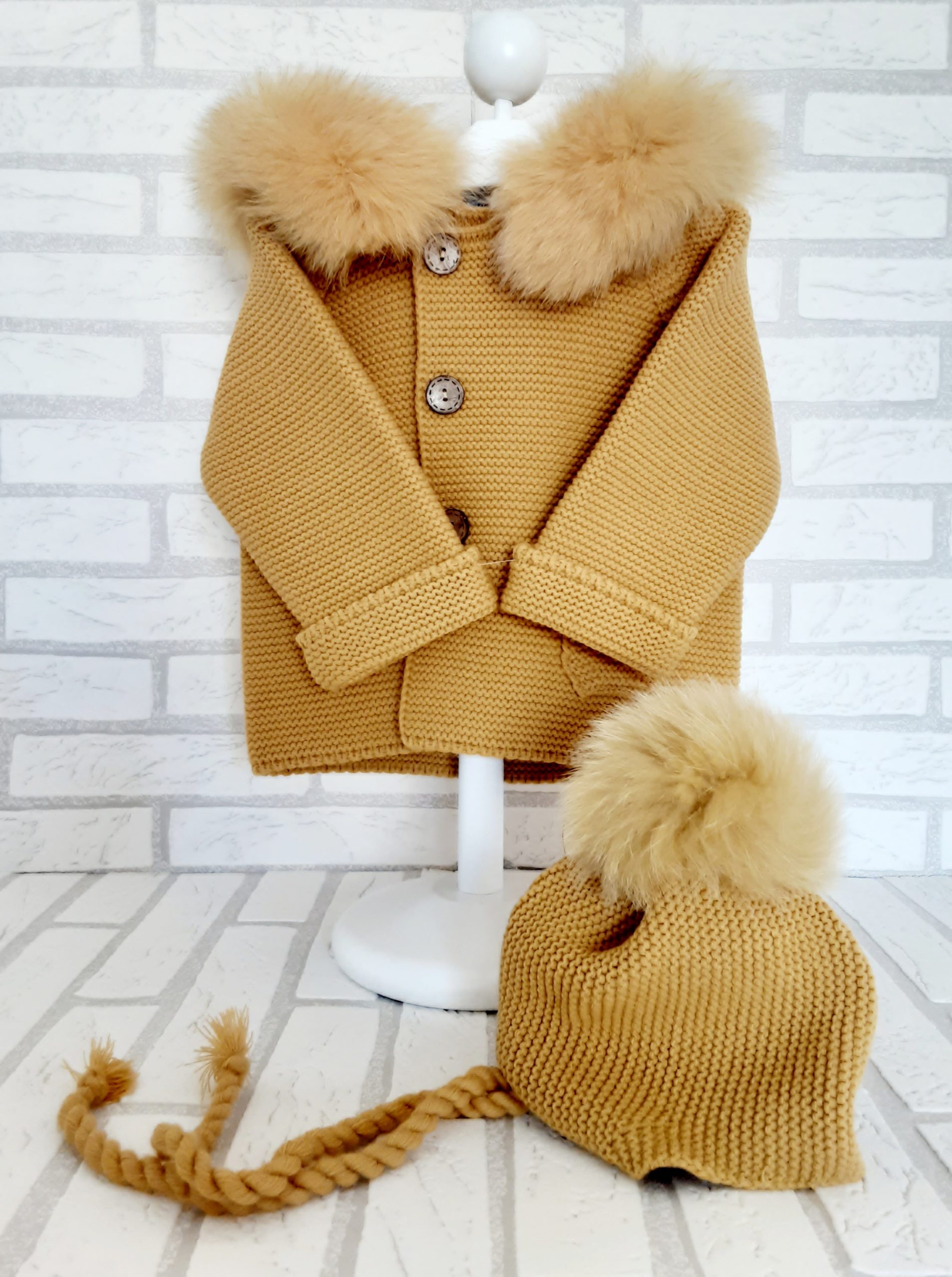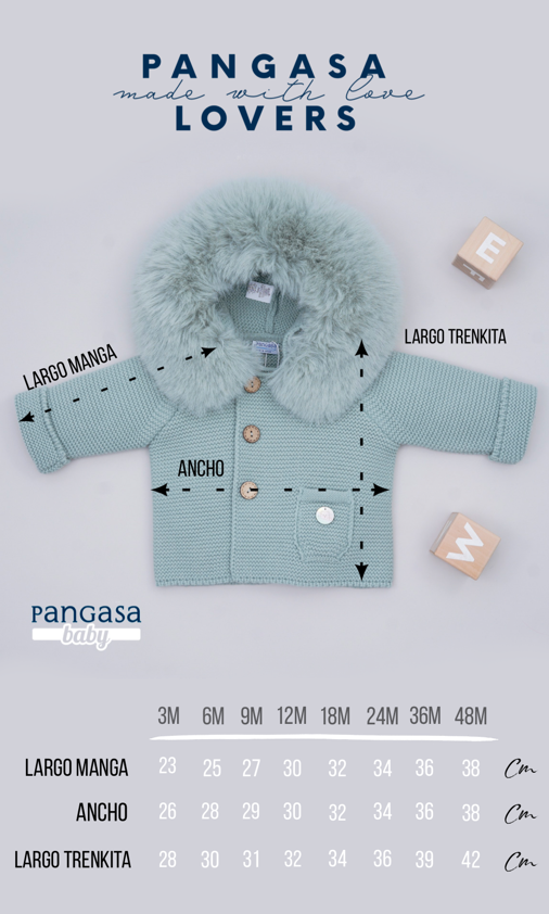 Precioso abrigo Trenka de punto, 100 % dralón (tejido hipoalergénico) muy parecido al hilo de algodón, perfecto para dar la mejor calidad y confort a la piel de nuestros bebés.