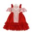 Precioso vestido infantil de ceremonia para niña en tejido rojo LÍA, con encaje, luce espectacular volante y forma en los hombros.