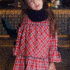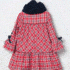 Precioso vestido estampado a cuadros rojo con volantes en falda y puños.